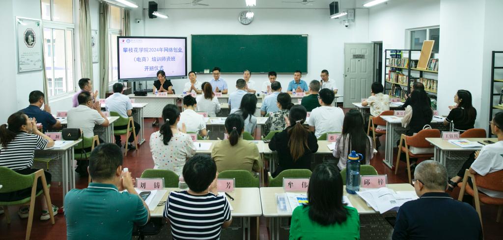 为进一步加强我校创业培训师资队伍建设,7月5日,我校在二教206举行2024年网络创业(电商)培训师资班开班仪式。人社部国家级创业培训师李洪福、黄磊应邀参加开班式并担任授课教师,攀枝花市人力资源和社会保障局副局长徐洪江、攀枝花市就业创业促进中心常务副主任邓弘、市就业创业促进中心相关工作人员,学校副校长王兵、创新创业学院相关工作人员、30名参训教师参加开班式。