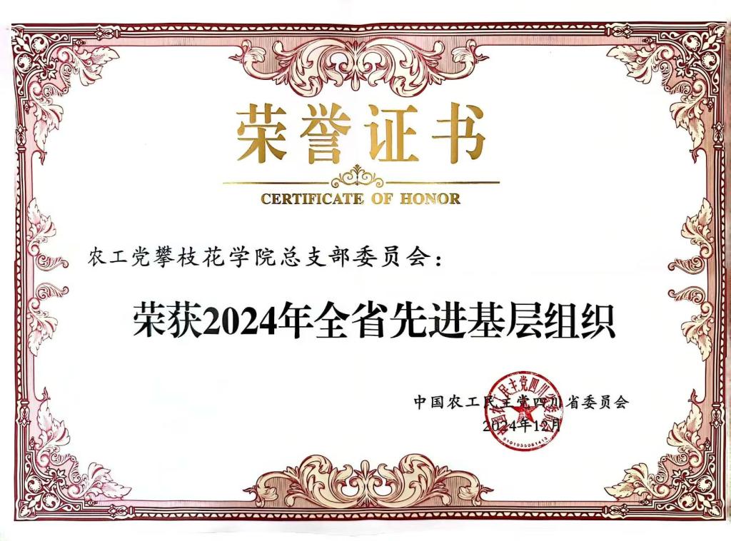 近日,在农工党四川省委会十三届四次全体(扩大)会上,农工党攀枝花学院总支荣获“2024年全省先进基层组织”,总支主委冯奇荣获“2024年全省先进个人”荣誉称号。