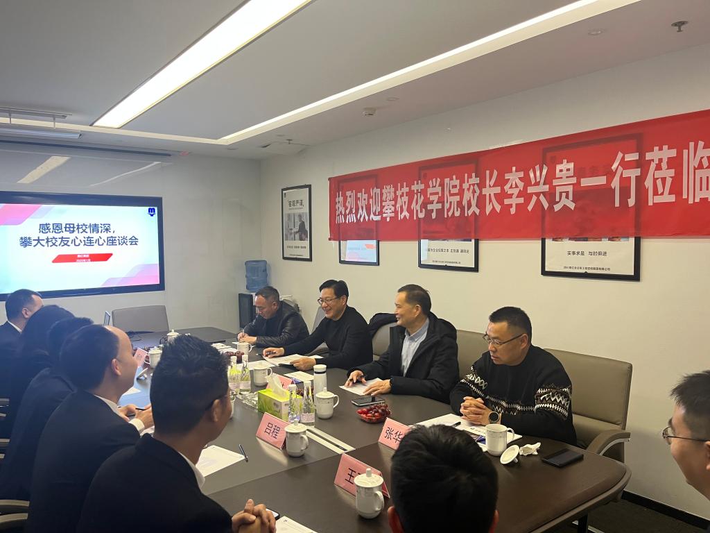 在四川全过程工程咨询集团有限公司(简称“美亿集团”),李兴贵一行与美亿集团运营副总裁刘红霞等攀枝花学院的校友们进行了交流座谈。刘红霞介绍了美亿集团运营情况、发展态势、未来愿景,希望能进一步加强与母校的良好互动,共谋事业发展。座谈会上,与会同志就如何进一步加强全过程工程咨询领域人才培养、课程建设、校企合作、产教融合等多领域进行了深入的探讨交流。李兴贵为现场的攀枝花学院校友们送上了诚挚的问候与祝福,对校友们的杰出工作能力表示肯定,对美亿集团取得的成绩表示祝贺,他希望双方有更深、更广、更全面的合作交流,整合优势资源,加强校企联动,做实产教融合,实现互利共赢。